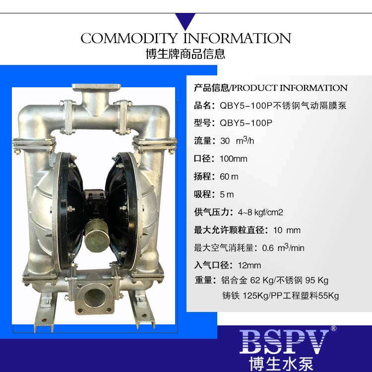QBY5-100P型不銹鋼氣動隔膜泵