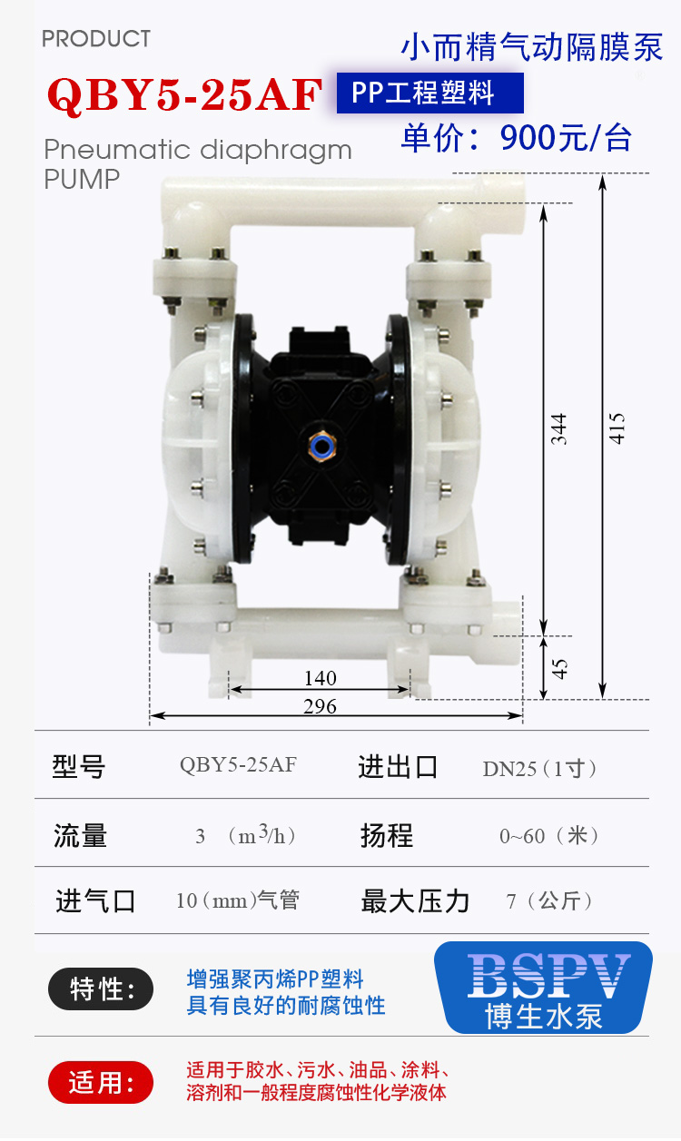 QBY5-25AF型精小型塑料氣動(dòng)隔膜泵