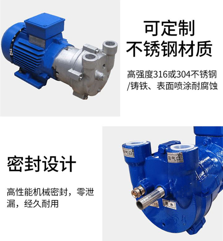 結構簡單,制造精度要求不高,容易加工。結構緊湊,泵的轉數較高,一般可與電動機直聯,無須減速裝置。故用小的結構尺寸,可以獲得大的排氣量,占地面積也小。壓縮氣體基本上是等溫的,即壓縮氣體過程溫度變化很小。由于泵腔內沒有金屬磨擦表面,無須對泵內進行潤滑,而且磨損很小。轉動件和固定件之間的密封可直接由水封來完成。吸氣均勻,工作平穩可靠,操作簡單,維修方便